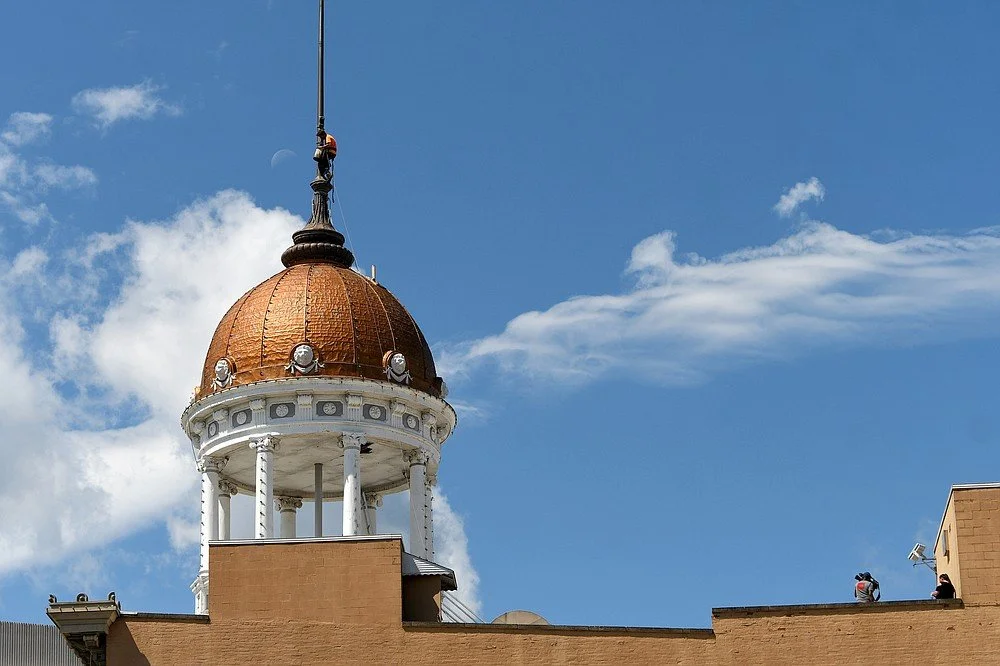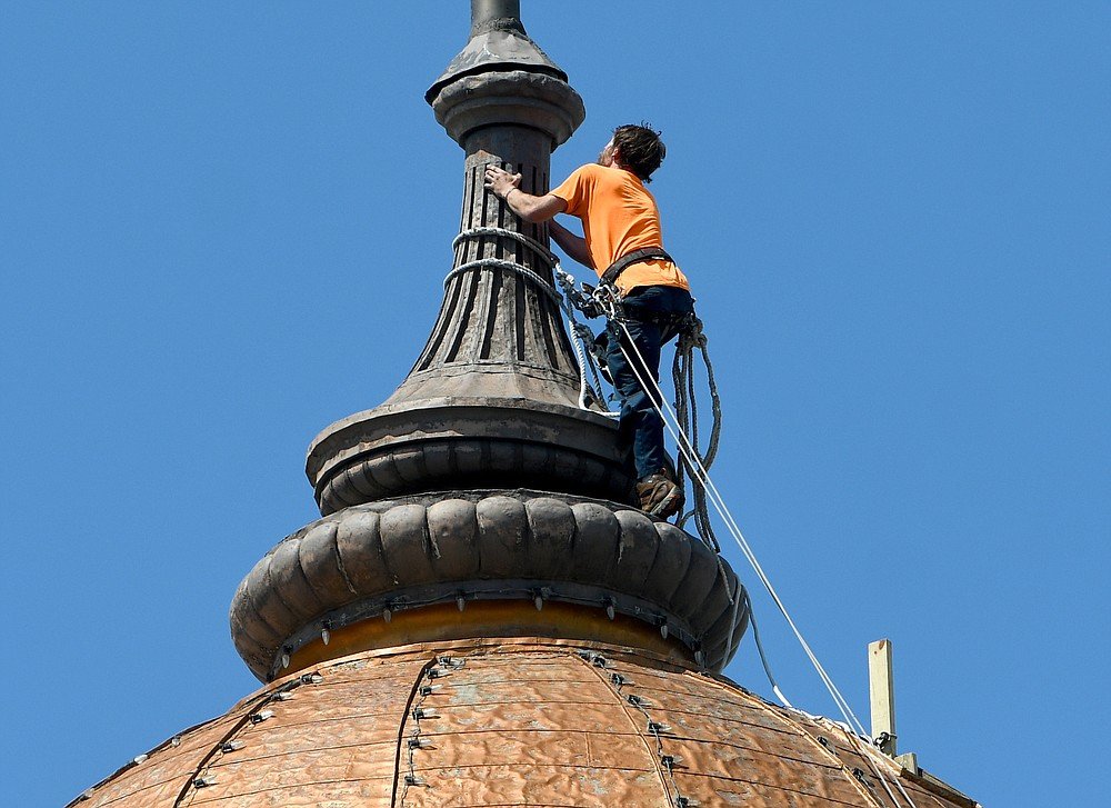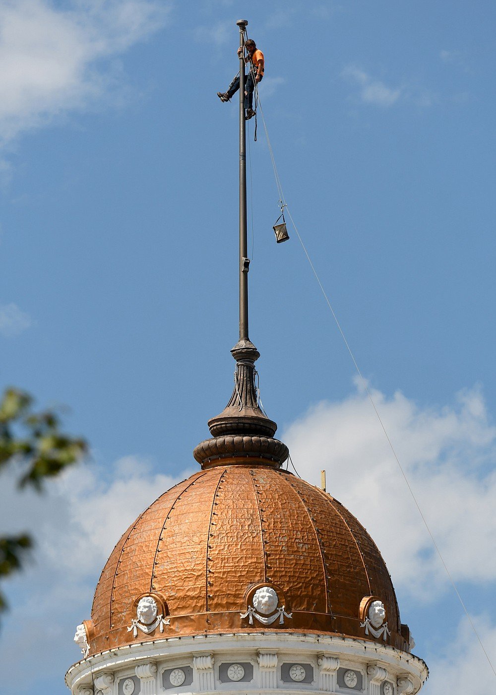 240 feet up: Man scales flagpole for repair on The Dome Building